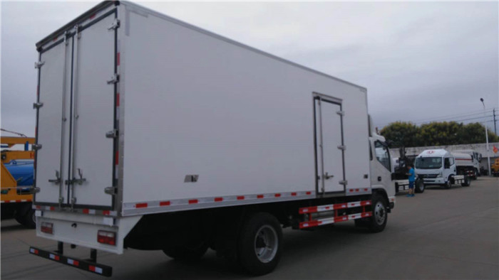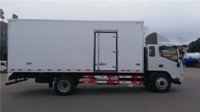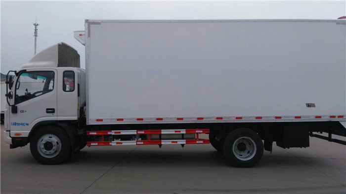 廂體尺寸6200×2220×2300(mm)約32立方,廂體厚度為8厘米。內(nèi)外板材采用冷藏車專用玻璃鋼,(可反射陽光),中間夾層為聚氨酯發(fā)泡隔熱材料,(防火阻燃隔熱)真空復(fù)合粘接而成,配置箱體全為不銹鋼鎖件,不銹鋼包角,不銹鋼門框,帶有頂燈及防撞塊。廂體底部為鋁花紋板。我廠的冷藏保溫車保溫材料選用進口級別XPS,吸水率≤1,導(dǎo)熱系數(shù)≤0.028W/mk,抗壓≥150Kpa,密度30~45kg/m3,使用國際上最為先進的第五代全封閉聚氨酯板塊粘接結(jié)構(gòu),廂板表面材料有玻璃鋼、不銹鋼、鋁合金、彩鋼板等材料可供選擇,廂體成型后具有質(zhì)量輕,保溫系數(shù)高,抗沖擊力強,無滲漏等優(yōu)點,對大氣、水和酸、堿、鹽等介質(zhì)具有良好的耐腐蝕性和抗老化性 。通過優(yōu)化設(shè)計,降低了整車質(zhì)心,增大了有效容積。經(jīng)測試,整車綜合節(jié)能率,使用壽命,比一般冷藏廂保溫高1~2倍。